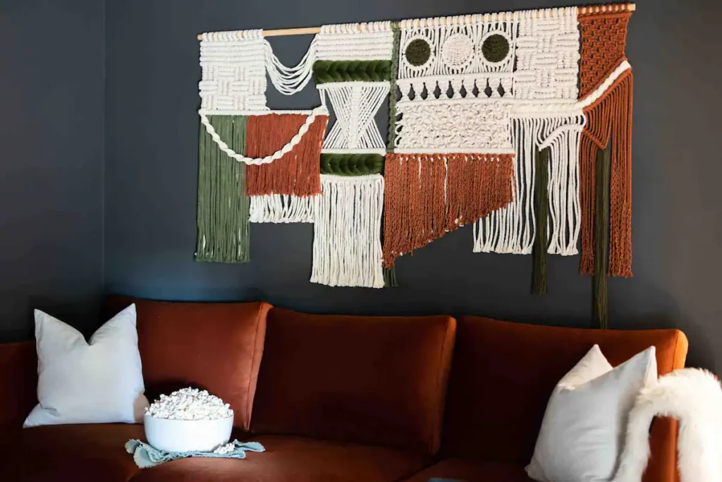 Top amenities: 100″ HDTV with Roku, hot tub, fire pit, movie theater